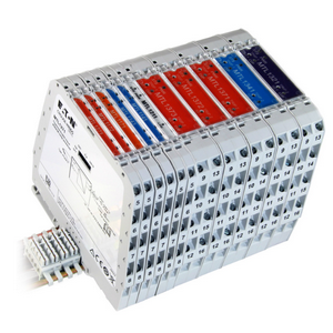 Les modules et d'accessoires MTL1000 sont utilisées avec des systèmes connectés au processus. Ils se composent de modules d'interface isolés compacts montés sur un rail DIN de 35 mm. L'alimentation est fournie par un bus de puissance monté sur un rail DIN, auquel le module sectionneur est connecté une fois clipsé sur le rail DIN. L'alimentation est fournie aux isolateurs à l’aide d’un module dédié qui fournit également la limitation de courant en cas de défaut.